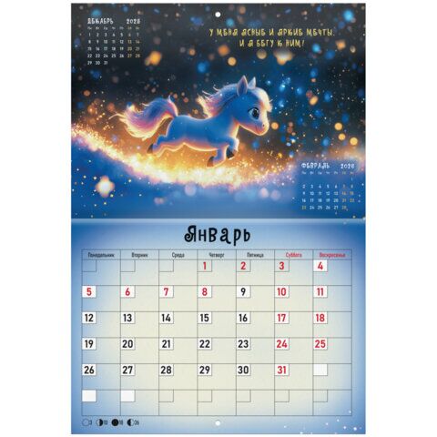 Календарь-планер настенный перекидной на 2026 г., BRAUBERG, 12 листов, 29,5х21,3 см, "Magic", 169881, купить в Грант СПБ