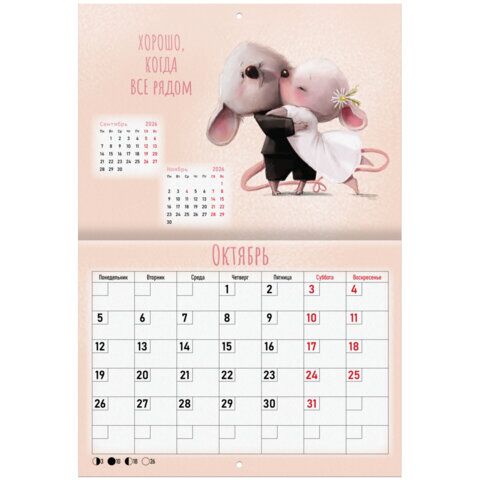 Календарь-планер настенный перекидной на 2026 г., BRAUBERG, 12 листов, 29,5х21,3 см, "Мотиваторы", 169882