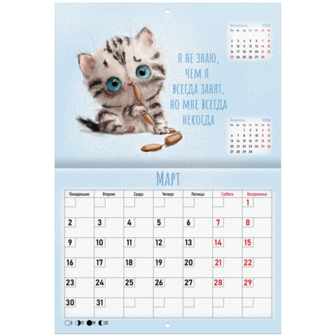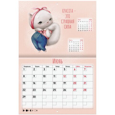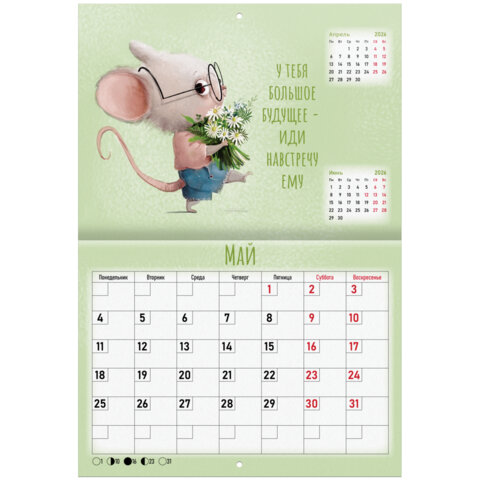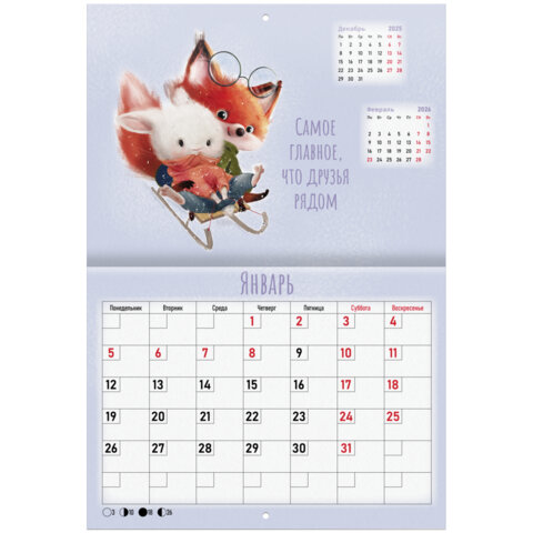 Календарь-планер настенный перекидной на 2026 г., BRAUBERG, 12 листов, 29,5х21,3 см, "Мотиваторы", 169882, купить в Грант СПБ