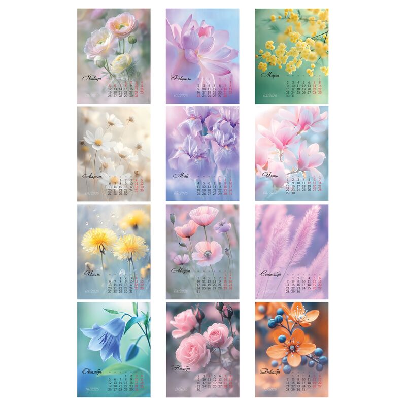 Календарь настольный перекидной BG «Нежность» на 2026 год – отличный помощник для офиса. Размер горизонтального календаря – 108*140 мм, тип скрепления – гребень/спираль. Календарь имеет подложку с рисунком и 7 листов. Календарный блок изготовлен из мелова