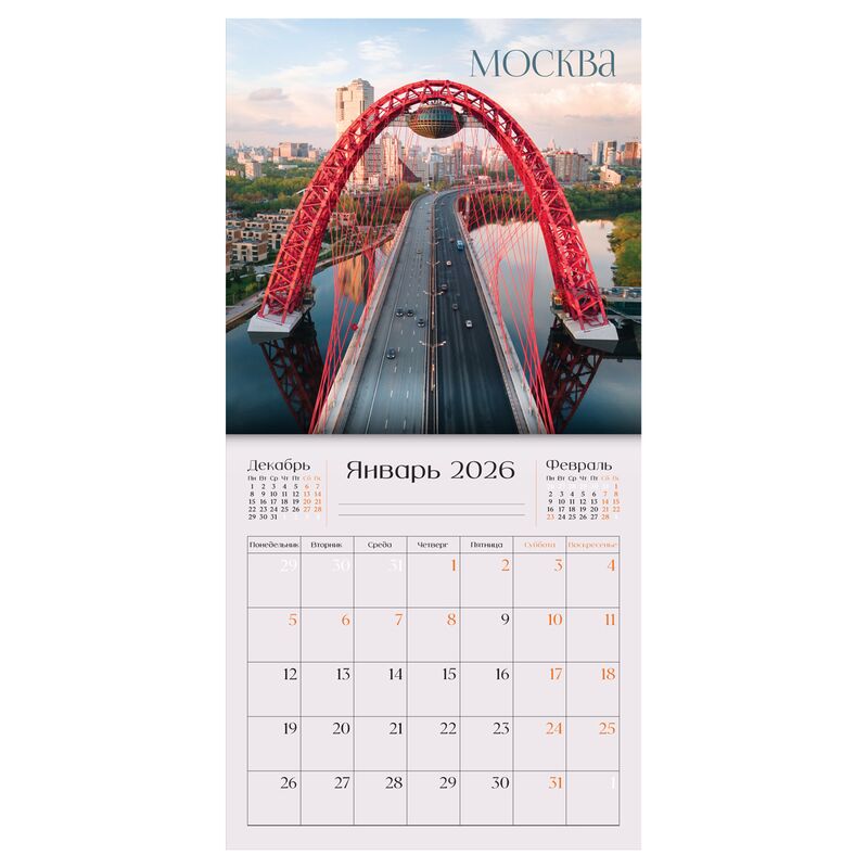 Настенный перекидной календарь на скрепке BG "Путешествие по России" на 2026 год — это идеальное сочетание функциональности и эстетики, которое преобразит интерьер. Размер — 29*29 см. Изготовлен из мелованной бумаги плотностью 105 г\м2 с полноцветной печа