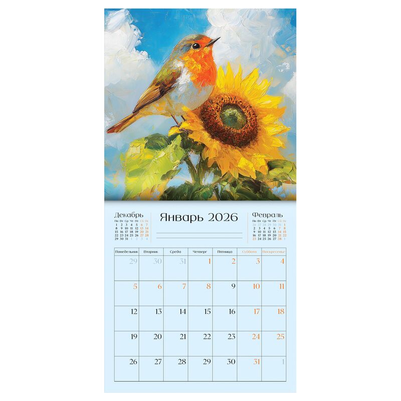 Настенный перекидной календарь на скрепке BG "Живопись" на 2026 год — это идеальное сочетание функциональности и эстетики, которое преобразит интерьер. Размер — 29*29 см. Изготовлен из мелованной бумаги плотностью 105 г\м2 с полноцветной печатью.