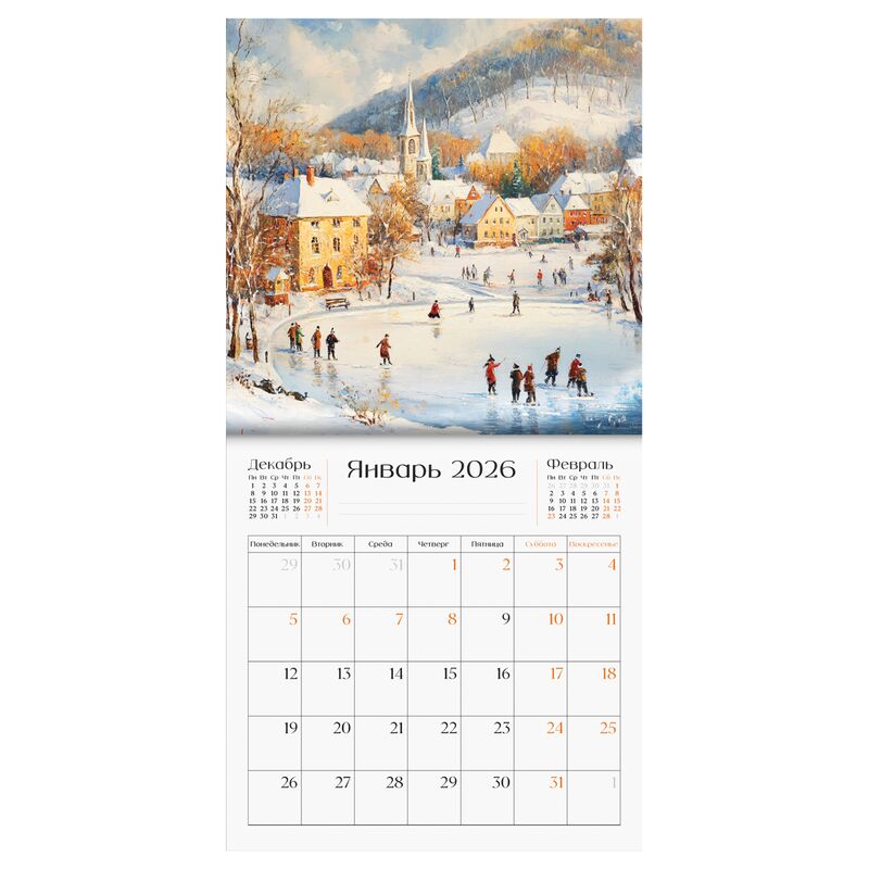 Настенный перекидной календарь на скрепке BG "Городские пейзажи" на 2026 год — это идеальное сочетание функциональности и эстетики, которое преобразит интерьер. Размер — 29*29 см. Изготовлен из мелованной бумаги плотностью 105 г\м2 с полноцветной печатью.