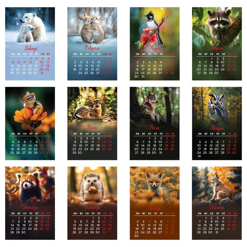 Настенный перекидной календарь на гребне bg «Милые животные» на 2026 год станет не только помощником в планировании, но и украшением пространства. Размер — 17*25 см. Календарь изготовлен из мелованной бумаги плотностью 105 г/м2 с полноцветной печатью, что