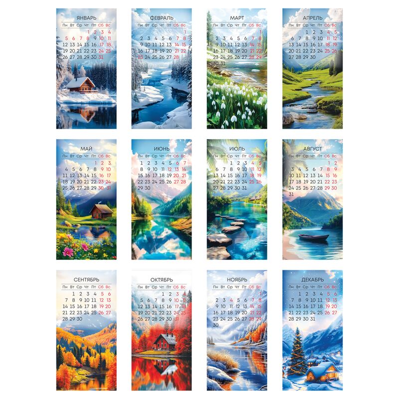 Настенный перекидной календарь на гребне bg «Природа» на 2026 год станет не только помощником в планировании, но и украшением пространства. Размер — 17*34 см. Календарь изготовлен из мелованной бумаги плотностью 105 г/м2 с полноцветной печатью, что обеспе