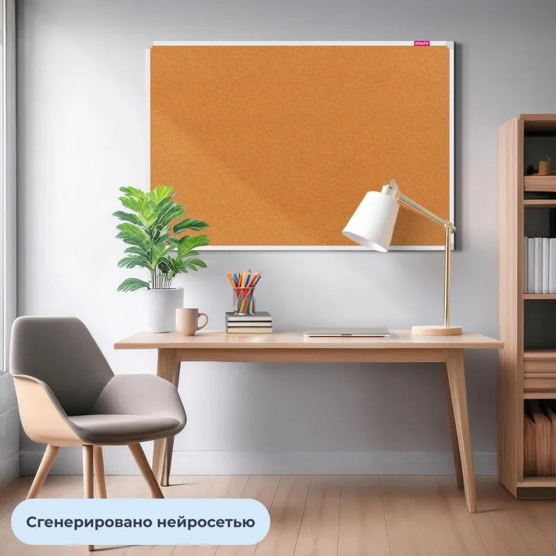 Доска пробковая Attache. Размер: 100x150 см. Цвет: коричневый. Изготовлена из легкой и долговечной натуральной пробки, предназначена для наглядной демонстрации информации на бумажных листах (рисунков, схем, таблиц, фотографий и т.д.) при проведении презентаций, совещаний, лекций, семинаров, тренингов и прочих подобных мероприятий, а также для информирования. Мягкое покрытие позволяет закреплять информацию при помощи канцелярских булавок и кнопок. Материал подложки доски - ДВП. Толщина подложки - 10 мм. Подходит для использования в офисах, образовательных и других учреждениях. Имеет алюминиевую раму с прочными пластиковыми уголками. Увеличенное рабочее пространство за счет использования утонченной алюминиевой рамы шириной 11 мм. Крепится к стене, набор для крепления входит в комплект. Толщина пробкового покрытия - 2 мм. Комплектация: - дюбель 6x30 - 6 шт., - шуруп универсал 3,5x30 - 6 шт., - кронштейн пластиковый - 6 шт., - инструкция.