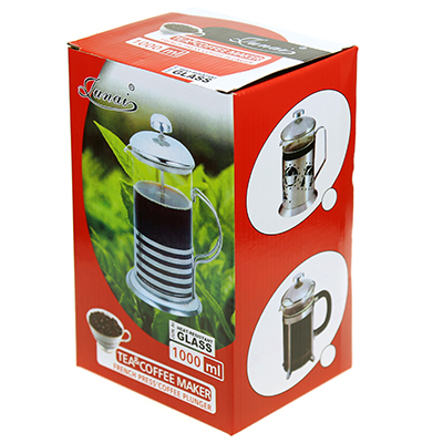 Френч-пресс пластмассовый корпус 1000мл, д10см h20,5см, стеклянная колба, черный, в подарочной коробке (Китай)