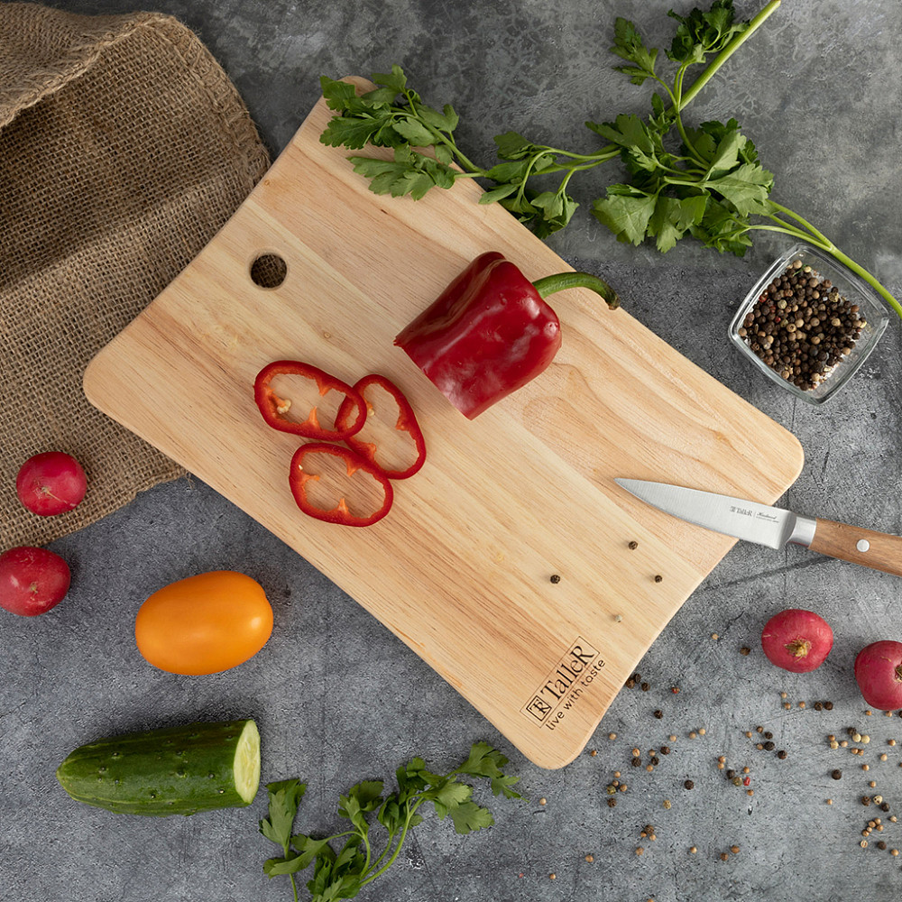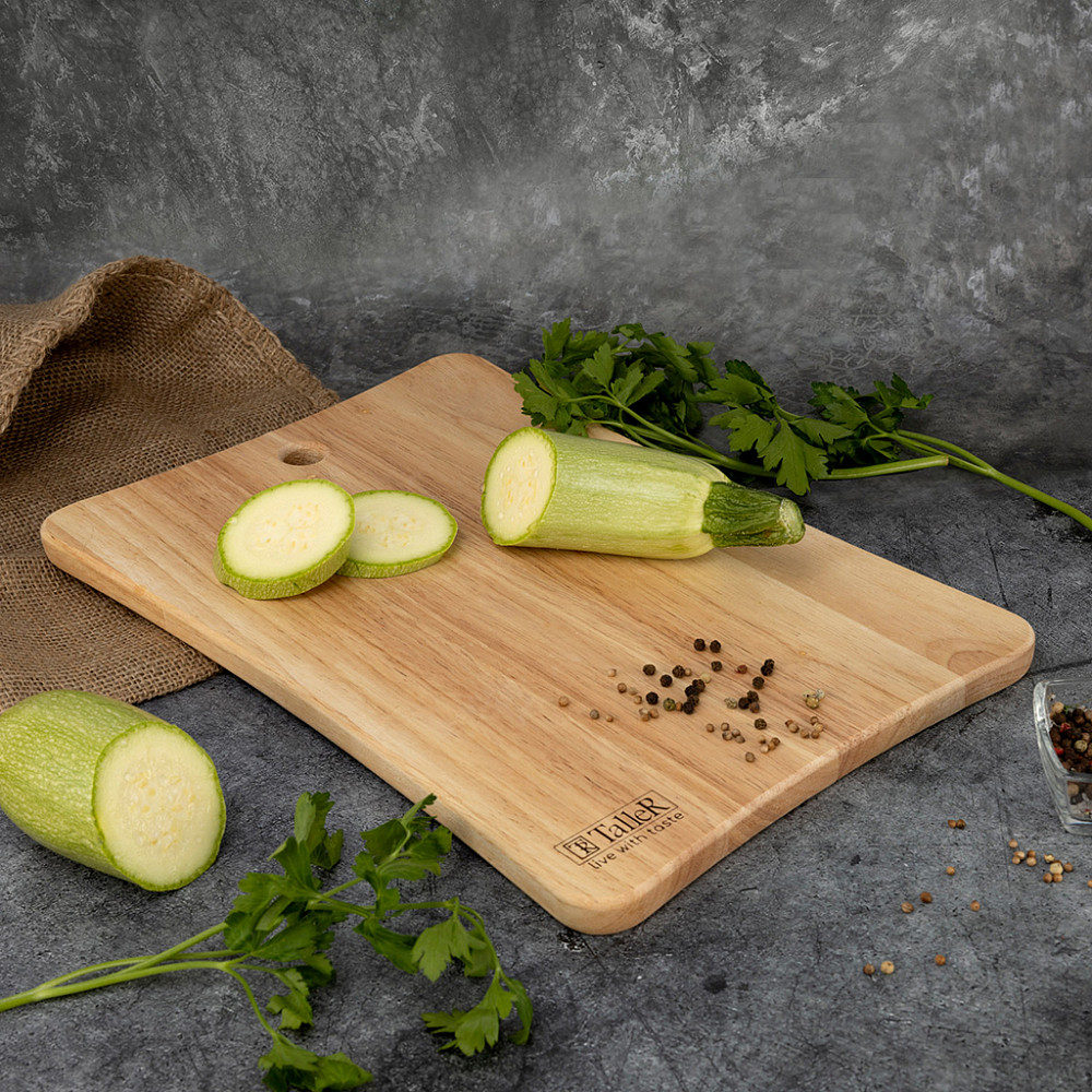 Доска выполнена из гевеи. Древесина гевеи обладает высокой прочностью и износостойкостью. Благодаря наличию в структуре дерева натурального каучука, который скрепляет волокна, посуда из гевеи устойчива к влаге, не впитывает запахи, обладает абсолютными антибактериальными свойствами. Гладкая и приятная на ощупь поверхность натурального дерева, его выразительная текстура в бежево-молочных оттенках, качественное исполнение изделий – все это принесет удовольствие от использования. Легко использовать и ухаживать: достаточно помыть в теплой воде и аккуратно вытереть полотенцем. Есть отверстие для подвешивания, чтобы хранить доску на рейлинге (диаметр - 1,8 см).
