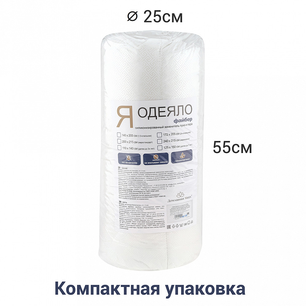 Одеяло Евро "ГУЧИ", универсальное/всесезонное, 200х220см, наполнитель 300г/м2, файбер высшего сорта, чехол тик смесовый (пэ70%/хл.30), стеганое, упак "Компакт" пакет ПВХ, еврослот, д25х55см/1,2кг, "Домашняя мода", 168925, купить в Грант СПБ