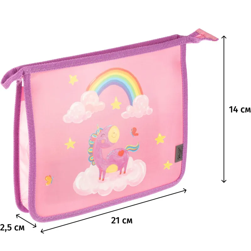 Папка для тетрадей Комус Класс/Комус Класс Волшебный Единорог формат А5, 1 отделение. Предназначена для хранения учебных принадлежностей. Застежка-молния сверху надежно защищает содержимое от грязи и влаги. Края папки имеют тканевую окантовку. Изготовлена из полипропилена. Страна производитель: Россия. В рамках ребрендинга производится перевод данного артикула с ТМ №1School на ТМ Комус Класс с сохранением всех потребительских характеристик товара. На переходный период допускается поставка данной продукции в двух вариантах дизайна.