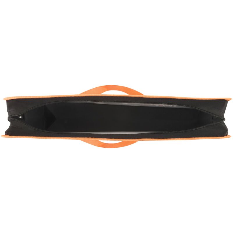 Папка изготовлена из текстиля с прочным пластиковым основанием. Застёжка-молния сверху надежно защищает содержимое от грязи и влаги. Края укреплены тканевой окантовкой. Ручки сделаны из тесьмы, поэтому отличаются прочностью и не порвутся в неподходящий момент.