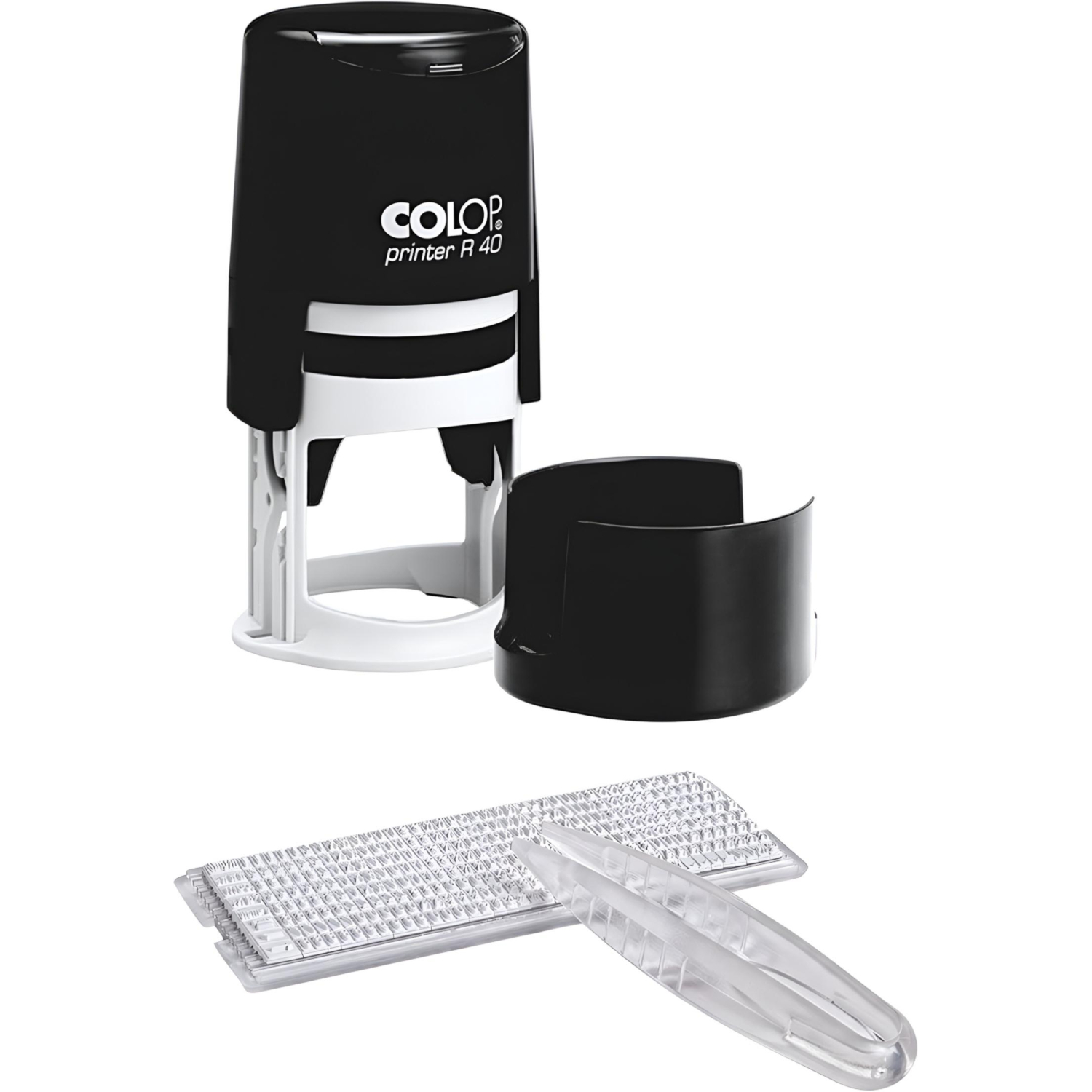 Комплект на автоматической оснастке диаметром 40 мм. В комплекте поставляется: касса букв 480 знаков, шрифт 3,1 и 2,2 мм TSA с креплением на одной ножке, сменная подушка синяя Е/R40 (арт. 3255), пинцет. Максимальное количество знаков: Внешний круг: основной шрифт-65, большой шрифт-44, Внутренний круг: основной шрифт-39, большой шрифт-31, 1-я и 3-я горизонтальная строка: основной шрифт-7, большой шрифт-6 2-я горизонтальная строка (в центре): основной шрифт-9, большой шрифт-7. Внимание! При использовании для набора текста широких символов (Ж, М, Ф, Ш, Щ, Ю, Ы), цифр, пробелы, а также при комбинации шрифтов 2,2 мм и 3,1 мм, данные по максимальной вместимости символов будут снижаться.Внимание! Все сменные штемпельные подушки, которыми комплектуется продукция Colop, заправлены краской Noris (Германия) на водной основе с добавлением глицерина и предназначены для проставления оттисков на бумагу и пористые поверхности. При необходимости проставления оттисков спиртсодержащей краской при помощи автоматической оснастки, стандартную подушку, идущую в комплекте, необходимо заменить на специальную совместимую со спиртосодержащими красками, во избежание затвердевания подушечного материала. Заказывается индивидуально.