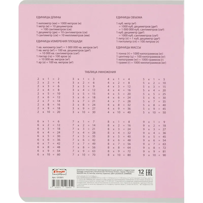 Тетрадь школьная Пастель формата А5, 12 листов. Обложка розового цвета: мелованный картон. Внутренний блок: офсет, плотность 65 гр., клетка, красные поля. Скрепление: скрепка. Тетрадь подойдет для занятий любому школьнику, используется для письма шариковыми, гелевыми и капиллярными ручками. Скругленные уголки помогут надолго сохранить привлекательный внешний вид тетради.Тетради отпечатаны на современном высокотехнологичном оборудовании и соответствуют стандартам качества. Количество в упаковке: 10 шт. "В рамках ребрендинга производится перевод данного артикула с ТМ №1School на ТМ Комус Класс с сохранением всех потребительских характеристик товара. На переходный период допускается поставка данной продукции в двух вариантах дизайна.