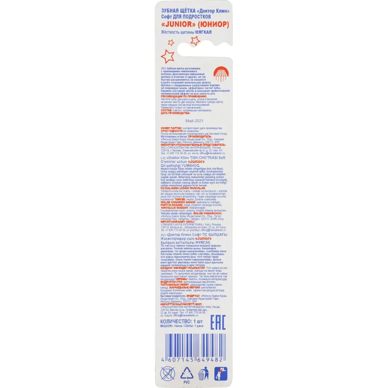 Зубные щётки изготовлены с применением нейлонового волокна. Долговечная нейлоновая МЯГКАЯ щетина, в отличие от других, не так быстро расщепляется, не ломается и долго сохраняет изначальную форму! Совершенное закругление вершин волокон эффективно чистит, бережно массирует дёсны и оказывает превосходный гигиенический эффект на полость рта. Цвет в ассортименте.